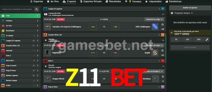 O Z11 Bet oferece uma grande seleção de opções de apostas em e-sports com probabilidades competitivas